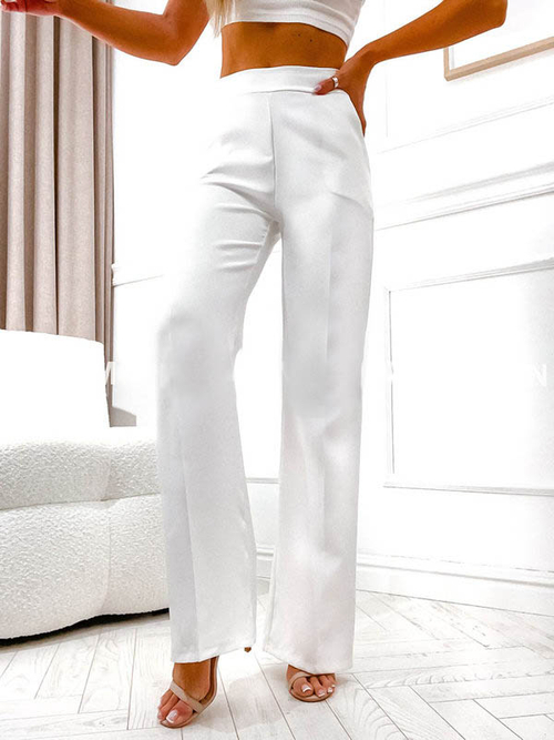 Pantaloni albi pentru femei cu picior larg - Îmbrăcăminte