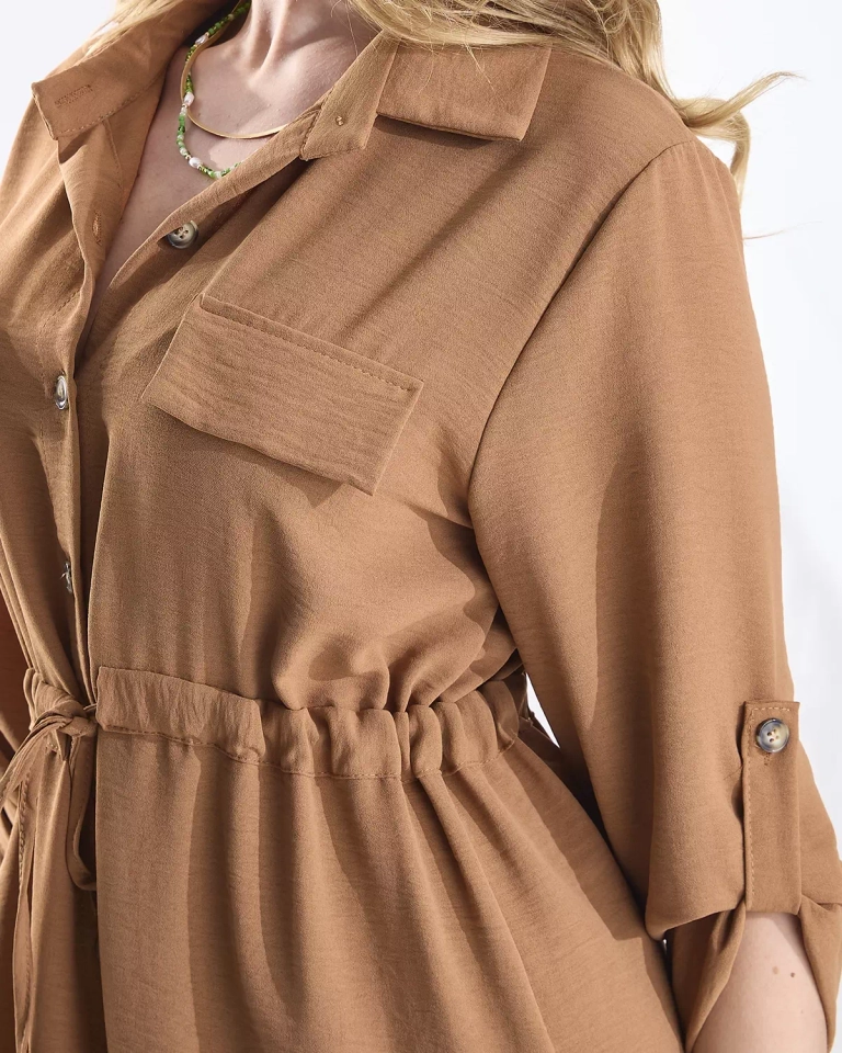 Rochie pentru femei maro cu nasturi - Îmbrăcăminte
