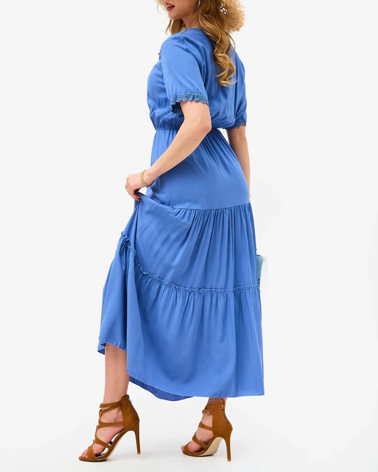 Rochie lungă pentru femei, albastră, cu mâneci scurte- Îmbrăcăminte