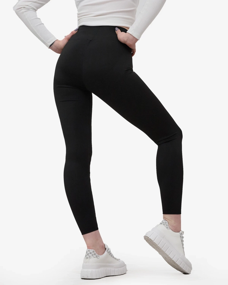 Jambiere pentru femei cu talie elastică largă în negru- Îmbrăcăminte