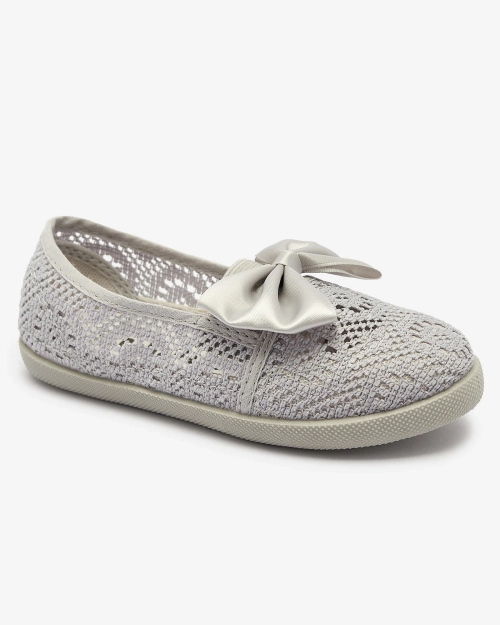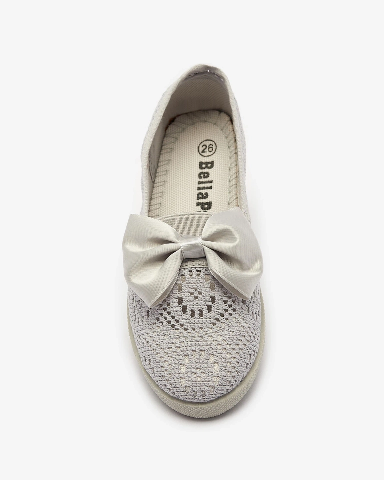 Adidași slip on gri pentru fete cu fundiță Sweet Time - Încălțăminte