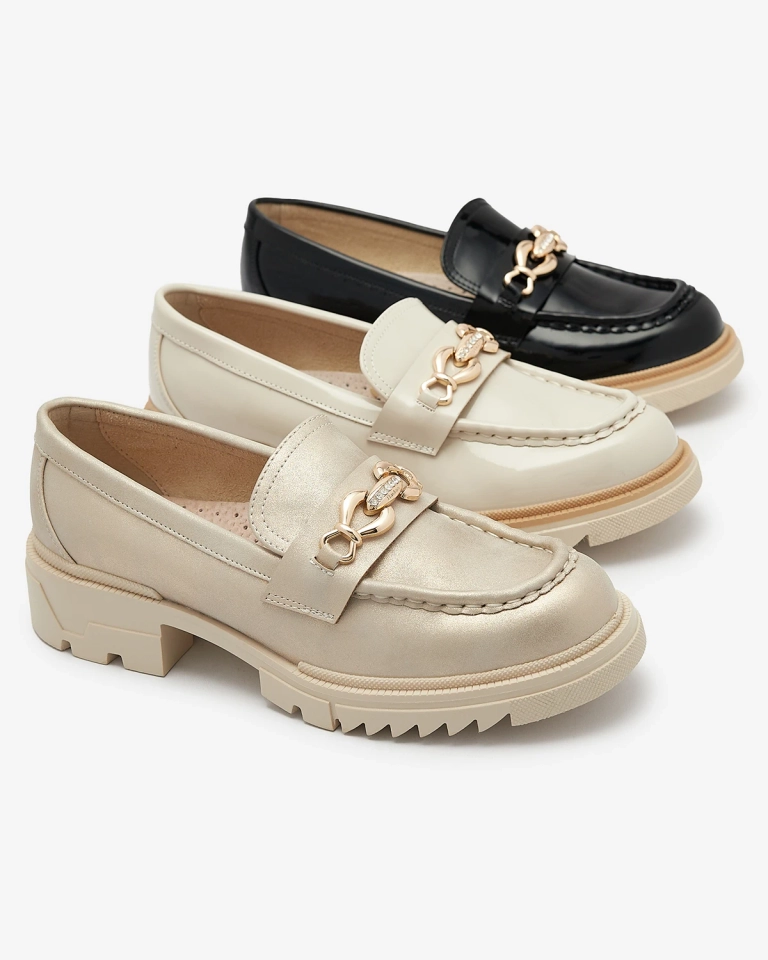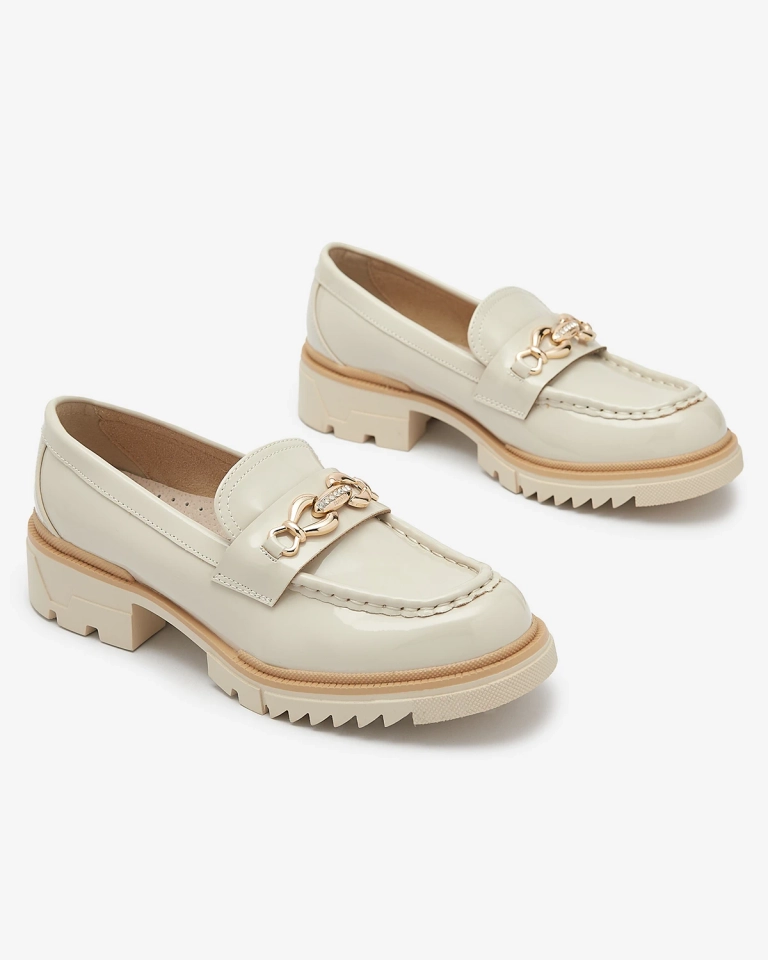 Mocasini de damă lăcuiți bej cu lanț Sotella - Încălțăminte
