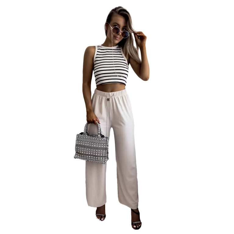- Pantaloni largi ușori pentru femei, confecționați din material cu nervuri. Produsul are o talie elastică și pantaloni, care vor sublinia perfect talia. Must have al acestui sezon! NOTĂ: Precizia măsurătorilor (+/-) 1 cm.