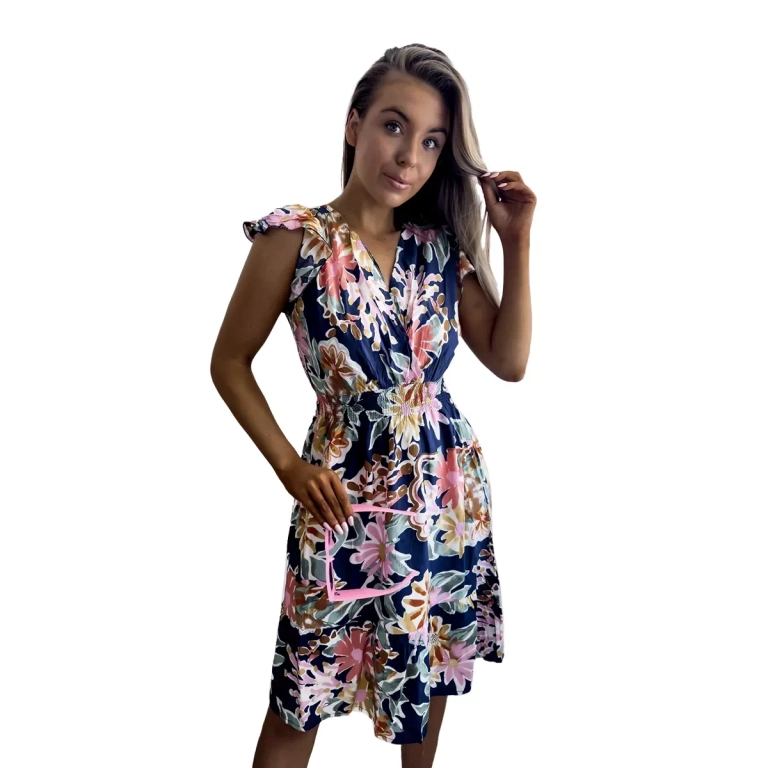 - Rochie mini de damă, realizată din țesătură ușoară, decorată cu imprimeu floral. Model cu decolteu plic și talie elastică în lățime. Model cu mâneci scurte. Grozav pentru vară! NOTĂ: Precizia măsurătorilor (+/-) 1 cm.