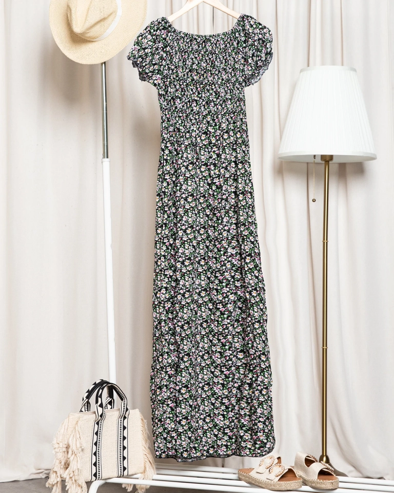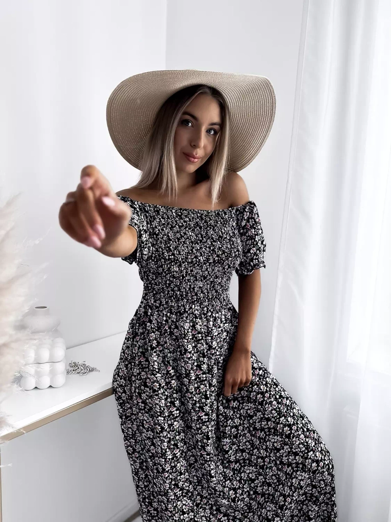 Rochie midi neagră cu flori pentru femei - Îmbrăcăminte