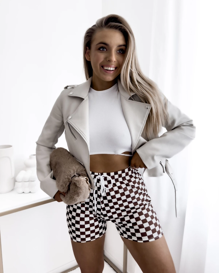 Pantaloni scurți din țesătură carouri maro și alb pentru femei PLUS SIZE- Îmbrăcăminte