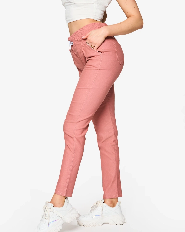 Pantaloni drepți din stofă de damă în roz PLUS SIZE- Îmbrăcăminte