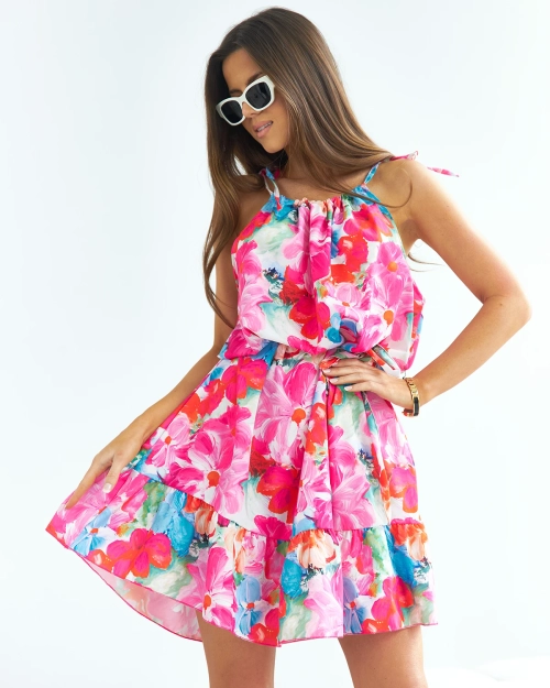 - Rochie scurtă ușoară pentru femei, finisată cu un model colorat. Model fără bretele, are un decolteu rotund și reglabil. Partea de jos a rochiei este finisată cu un volan. În plus, este prevăzută cu o curea din țesătură subțire. NOTĂ: Precizia măsurătoril