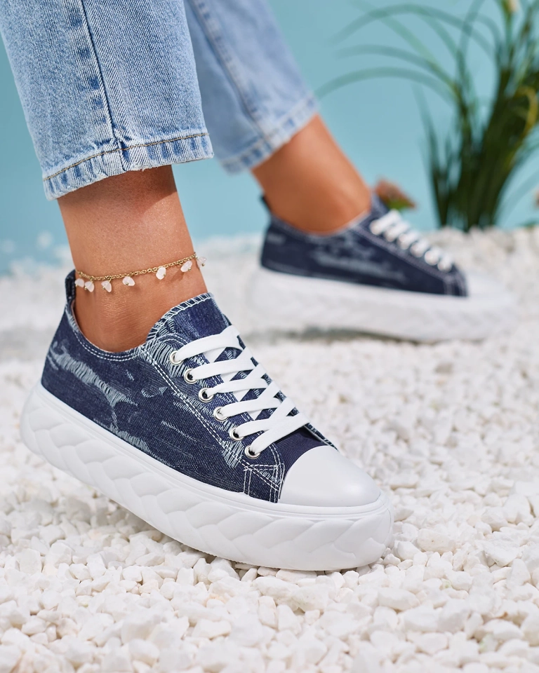 Royalfashion Adidași de damă din denim albastru marin cu frecare Nerolera