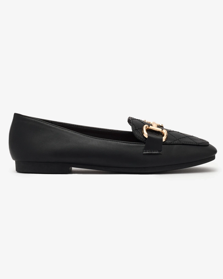 Royalfashion Mocasini matlasați negri pentru femei cu ornament auriu Wetifa