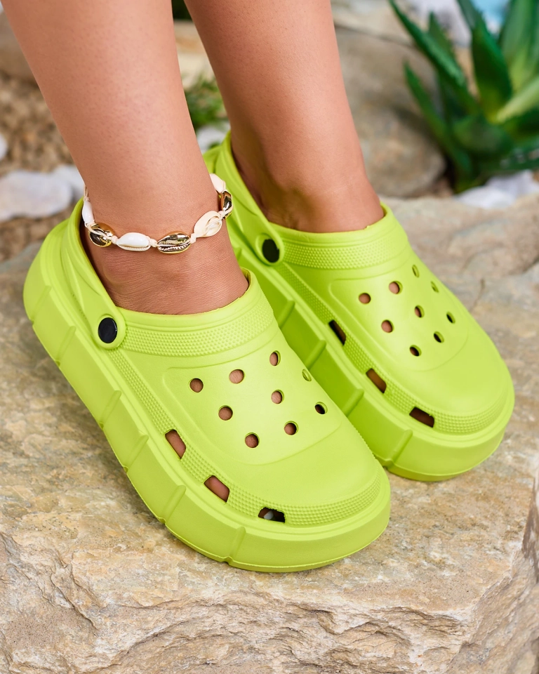 Royalfashion Șlapi de damă verde neon cu ornament ajurat Mightty