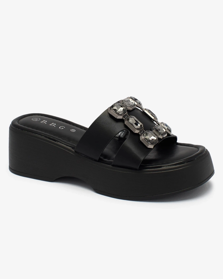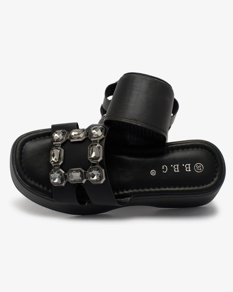 Royalfashion Șlapi de damă negri cu ornamente pe o talpă solidă Norixi