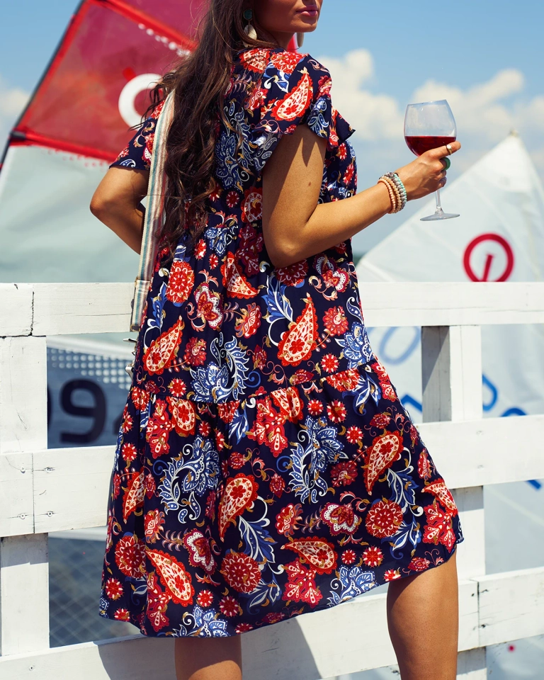 - Rochie frumoasă și colorată pentru femei, confecționată din țesătură ușoară de viscoză. Modelul cu model floral, are un decolteu în formă de inimă și mâneci scurte. Perfectă pentru zilele fierbinți de vară. NOTĂ: Precizia măsurătorilor (+/-) 1 cm.