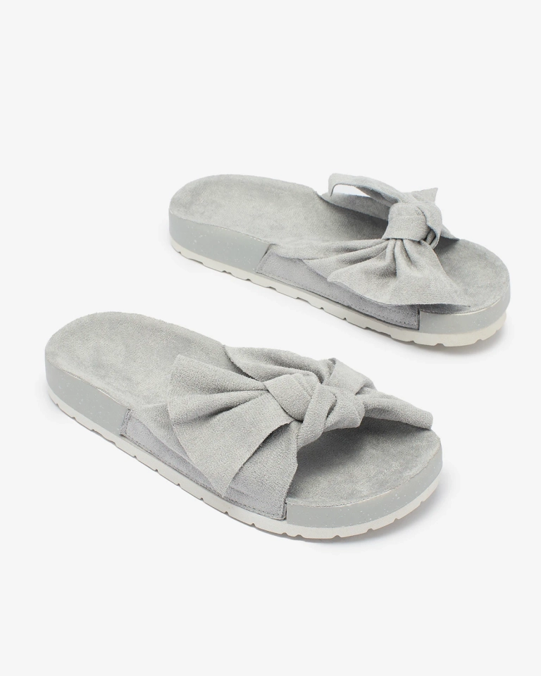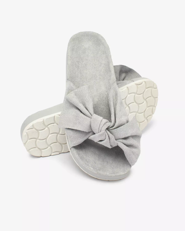 Royalfashion Șlapi de damă din piele ecologică de sued cu fundiță în gri Suui