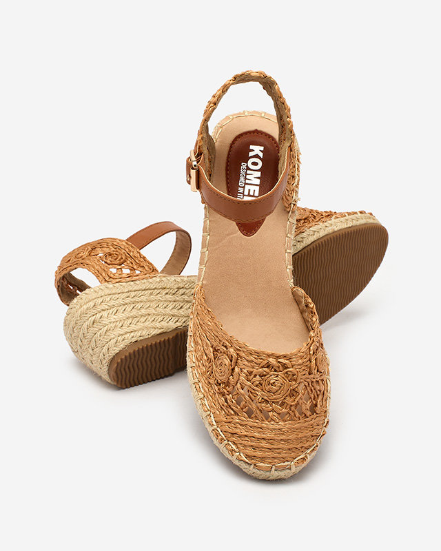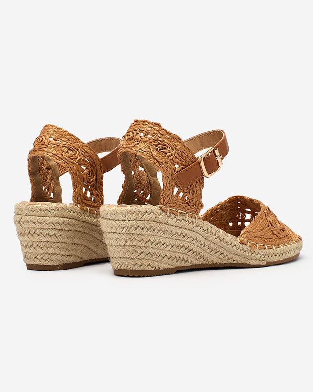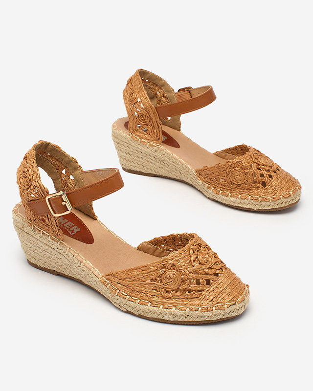 Royalfashion Sandale împletite pe tocuri pentru femei de culoare camel Gluzja