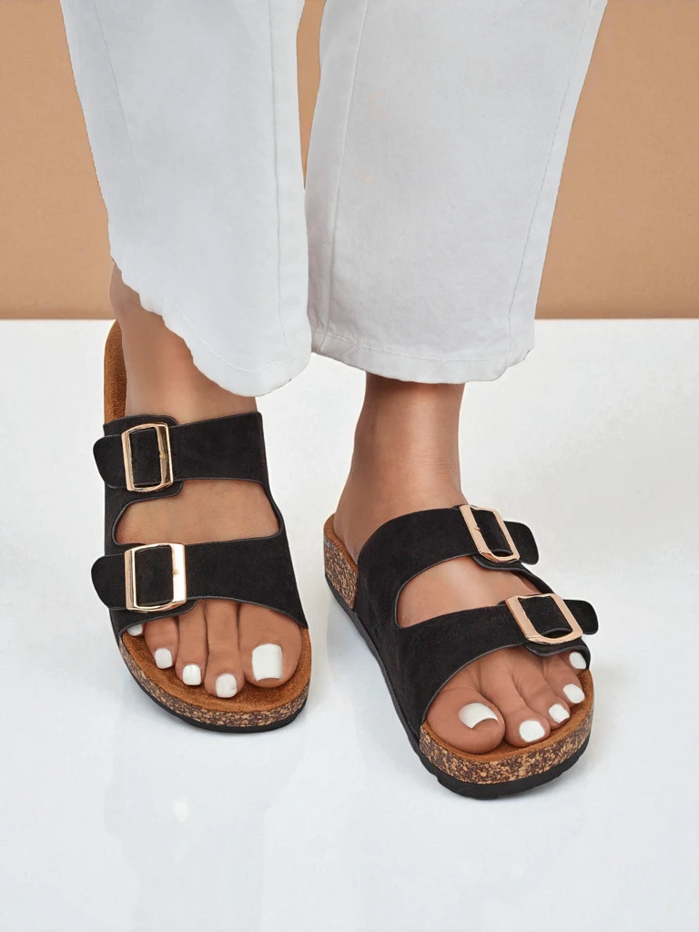 Damskie klapki Letitia to wyjątkowe połączenie modnego, włoskiego designu z komfortem użytkowania na najwyższym poziomie. Wykonane ze skóry ekologicznej zamszowej, zarówno na zewnątrz, jak i wewnątrz na wkładce, stanowią doskonałą alternatywę dla tradycyjnej skóry, dbając jednocześnie o środowisko i Twoje zdrowie. Materiał zamszowy jest miękki, przewiewny i łatwy w utrzymaniu czystości, a dzięki nowoczesnemu procesowi produkcji wyróżnia się trwałością i odpornością na przetarcia. Całość opiera się na płaskim, stabilnym obcasie o wysokości 2 cm, co gwarantuje wygodę podczas długiego noszenia. Klapki Letitia zostały wyposażone w dwie szerokie regulowane klamry, które umożliwiają idealne dopasowanie do stopy, niezależnie od jej szerokości. To obuwie stworzone z myślą o letnich dniach: znakomicie sprawdzi się zarówno podczas spacerów po mieście, jak i weekendowych wyjazdów za miasto. Główne zalety produktu to lekkość, przewiewność oraz wyjątkowy komfort użytkowania. Skórzana wkładka zamszowa zapewnia uczucie miękkości i ogranicza ślizganie się stopy nawet podczas upałów. Dzięki wyjątkowej elastyczności podeszwy stopy nie męczą się nawet przy wielogodzinnym chodzeniu. Podpowiedzi stylizacyjne: 1. Casualowy miejski look: załóż klapki Letitia do lnianych spodni i oversize'owej koszuli – idealne połączenie na zakupy czy spotkanie z przyjaciółmi. 2. Styl boho: połącz klapki z długą sukienką maxi, kapeluszem i wiklinową torebką – romantyczny styl na letni festiwal czy wieczór nad jeziorem. 3. Minimalistyczny szyk: klasyczne klapki zestaw z białymi jeansami i basicowym t-shirtem – prostota zawsze w modzie. Pielęgnacja i przechowywanie: Klapki czyścić suchą lub lekko wilgotną ściereczką, stosować tylko delikatne środki czyszczące przeznaczone do zamszu. Zaleca się przechowywać w suchym, przewiewnym miejscu, z dala od bezpośredniego światła słonecznego, aby uniknąć blaknięcia koloru. Obuwie Letitia wpisuje się obecnie w najnowsze trendy – płaskie klapki z szerokimi paskami i dużymi klamrami to absolutny must-have tego sezonu. Dzięki uniwersalnej czerni łatwo dopasujesz je do większości stylizacji, a zamszowa struktura dodaje całości subtelnej elegancji.
