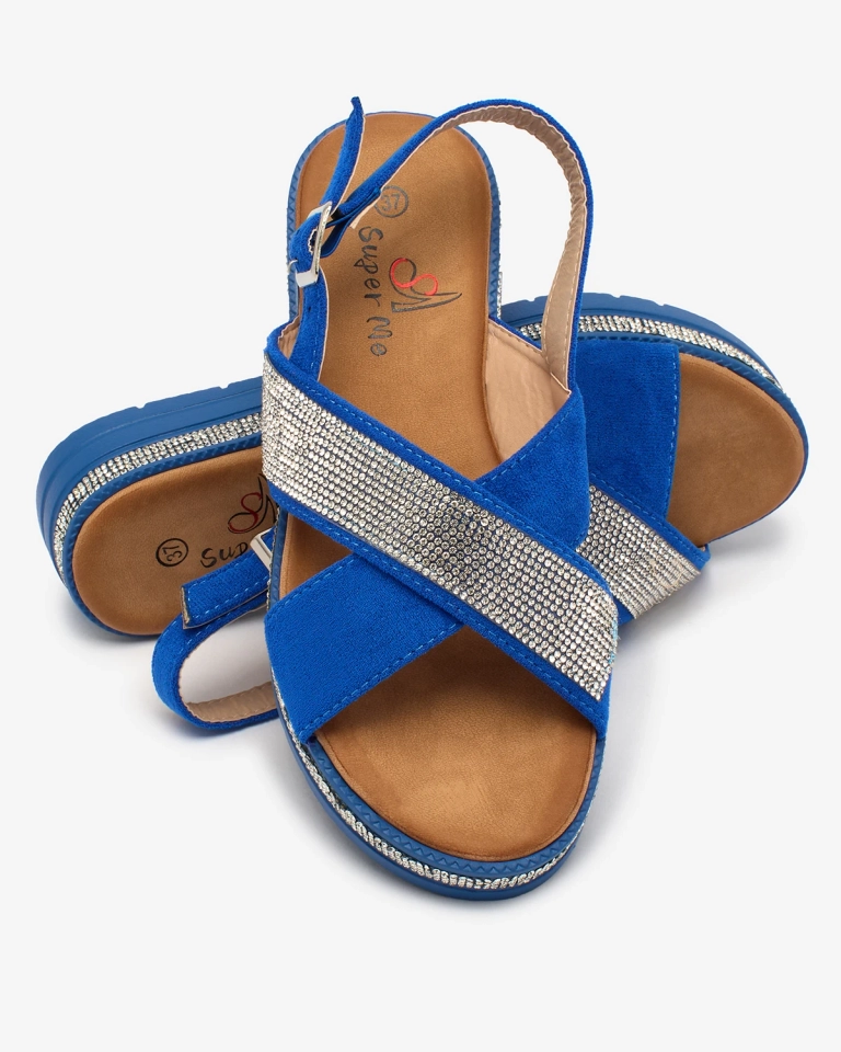 Royalfashion Sandale de damă din eco-suede cobalt cu zirconii Trikys