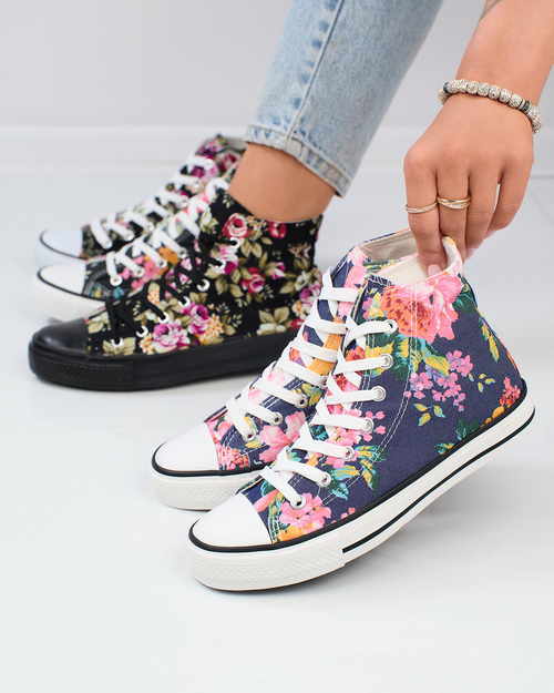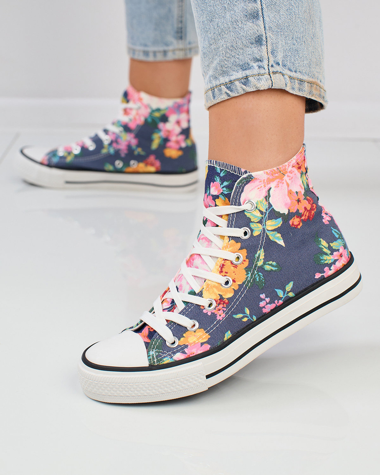 Royalfashion Adidași înalți de damă de culoare albastru marin cu imprimeu floral colorat Fahenna