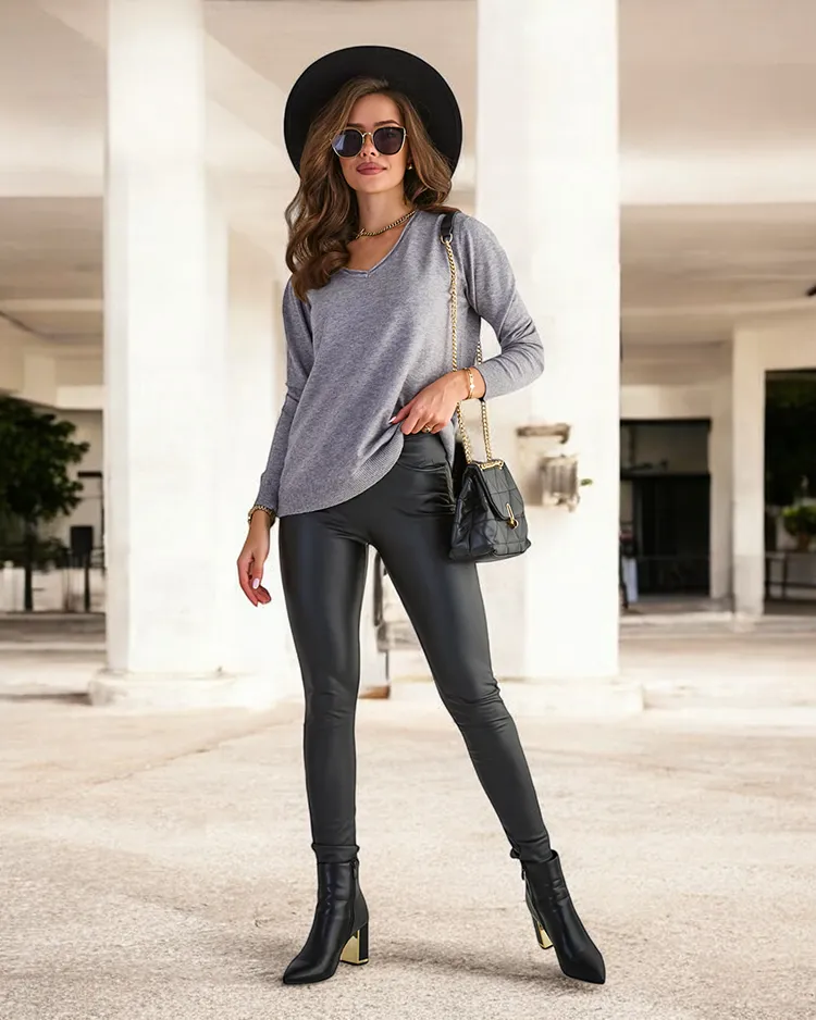 Royalfashion Pulover pentru femei gri cu decolteu în formă de inimă