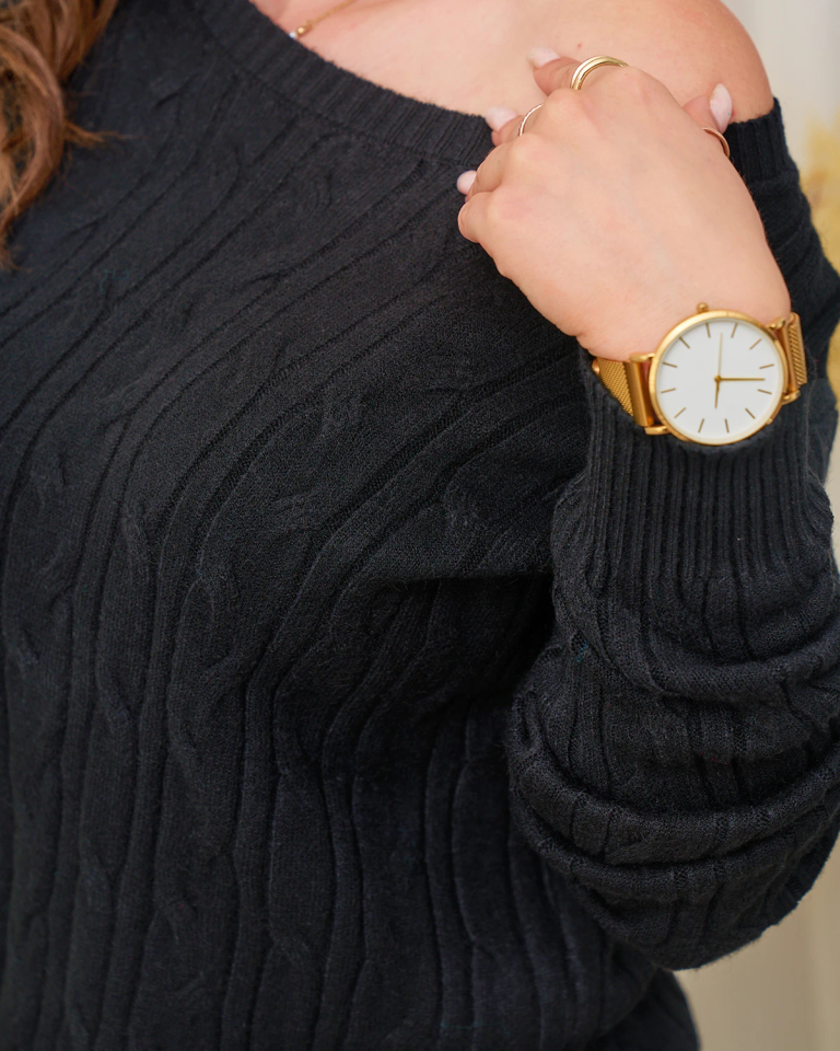 Royalfashion Pulover negru cu carouri pentru femei