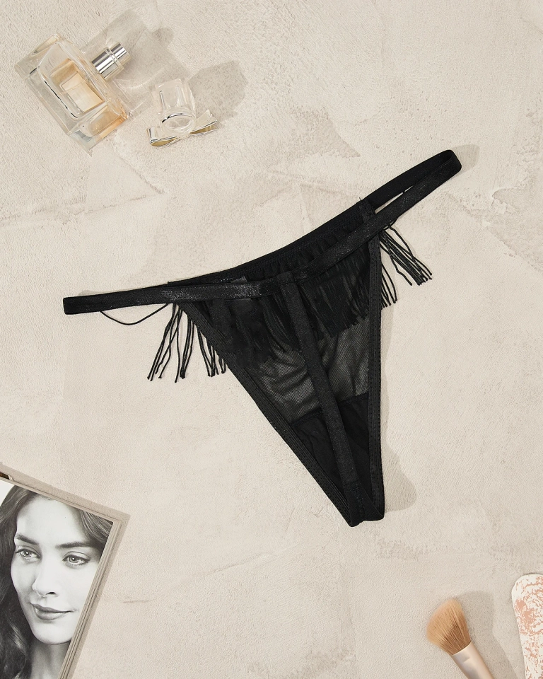Royalfashion Chiloți tanga pentru femei negri cu ciucuri