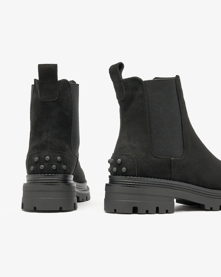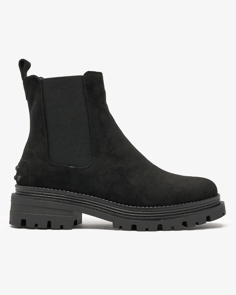 - Aceste cizme clasice și atemporale pentru femei adaugă stil oricărei ținute. Partea superioară este confecționată din piele eco-suede, cu izolație din blană moale în interior. Designul simplu și tocul plat confortabil sunt o combinație perfectă pentru pur