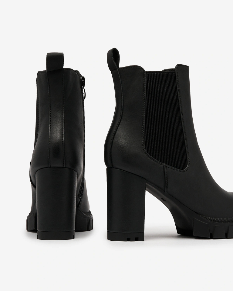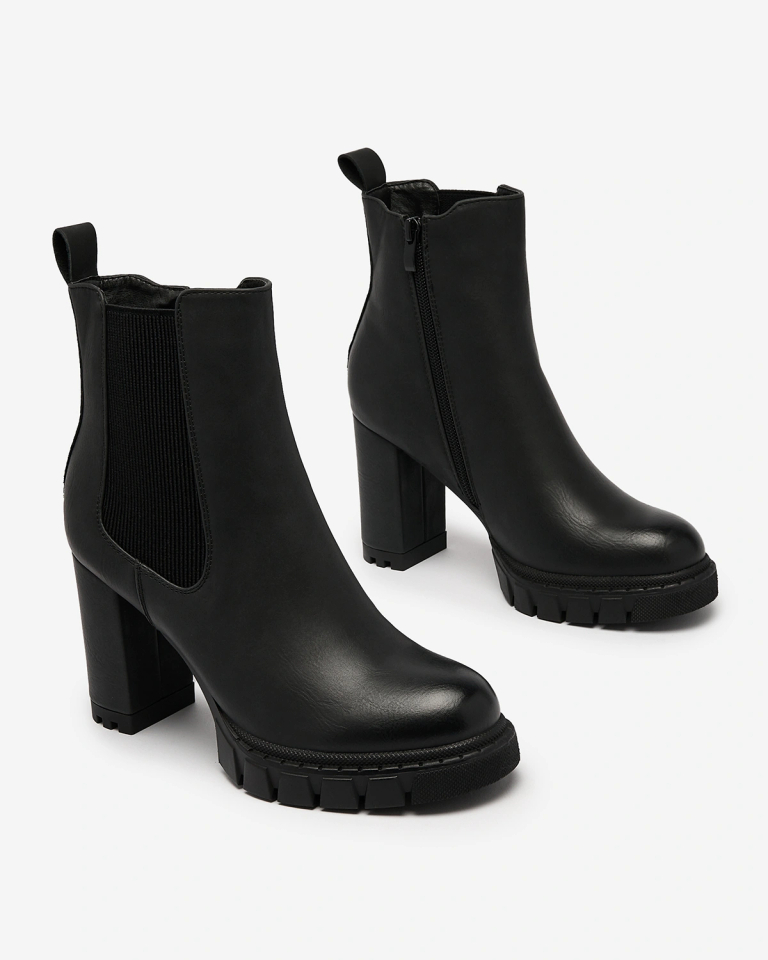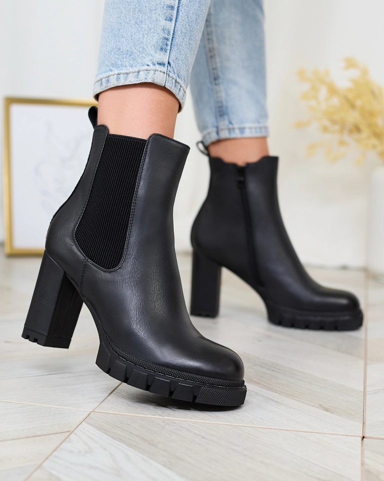 - Cizme cu toc înalt de excepție pentru femei, ușor izolate. Partea superioară este confecționată din piele ecologică. Interiorul este umplut cu blană. Încălțămintea este prevăzută cu fermoar și are o inserție elastică pe lateral. Super adaos la ținutele ta