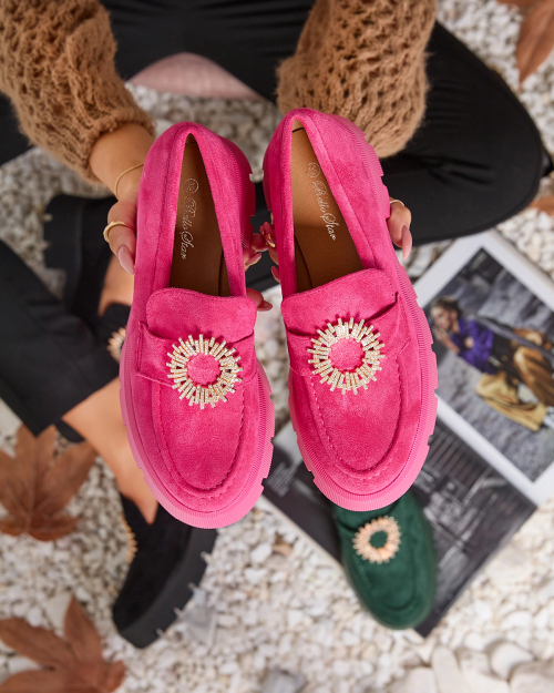 Royalfashion Mocasini de damă din piele ecologică de căprioară Fuchsia Likoki