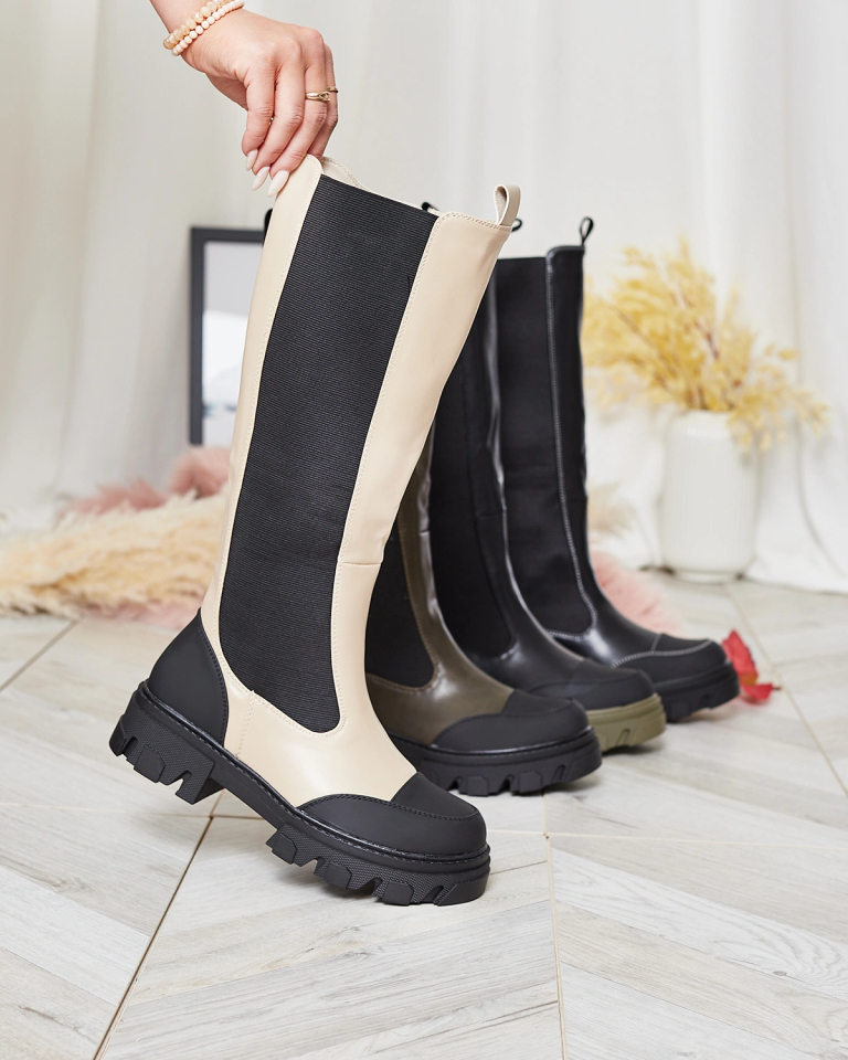 Royalfashion Cizme jumătatea gambei bej pentru femei Blyss