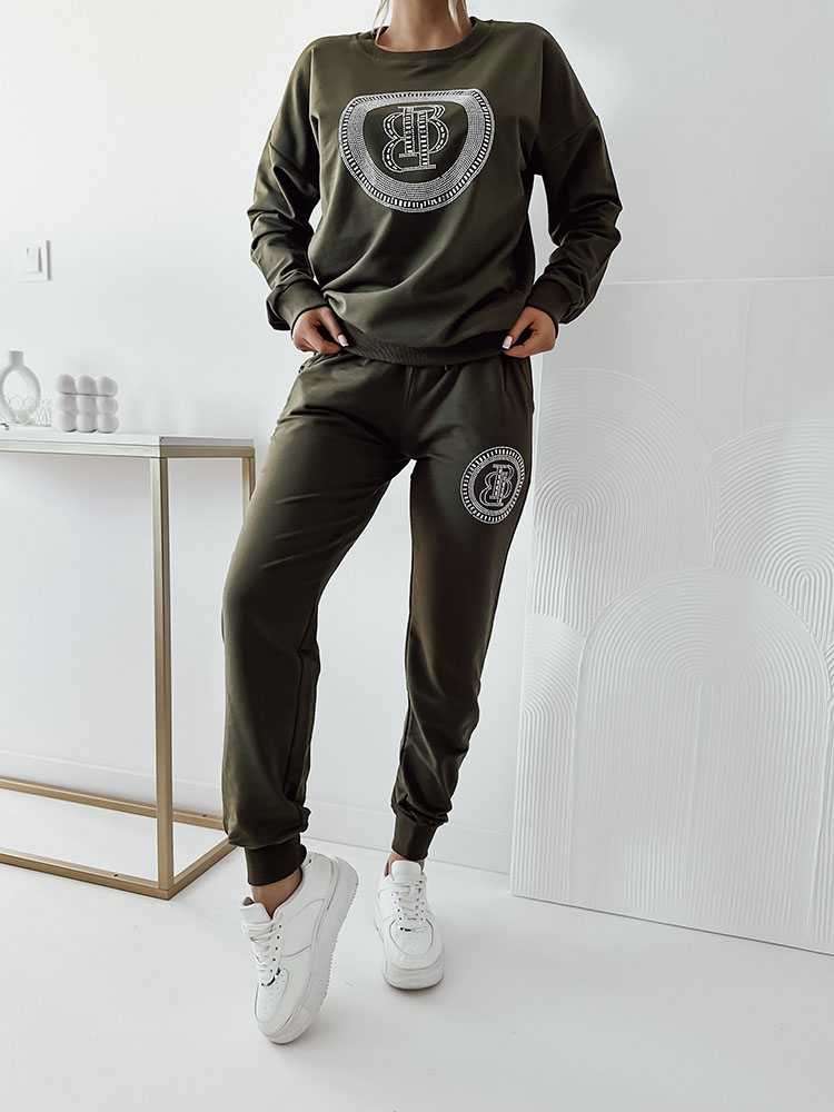 Royalfashion Set pulover pentru femei verde închis cu zirconii