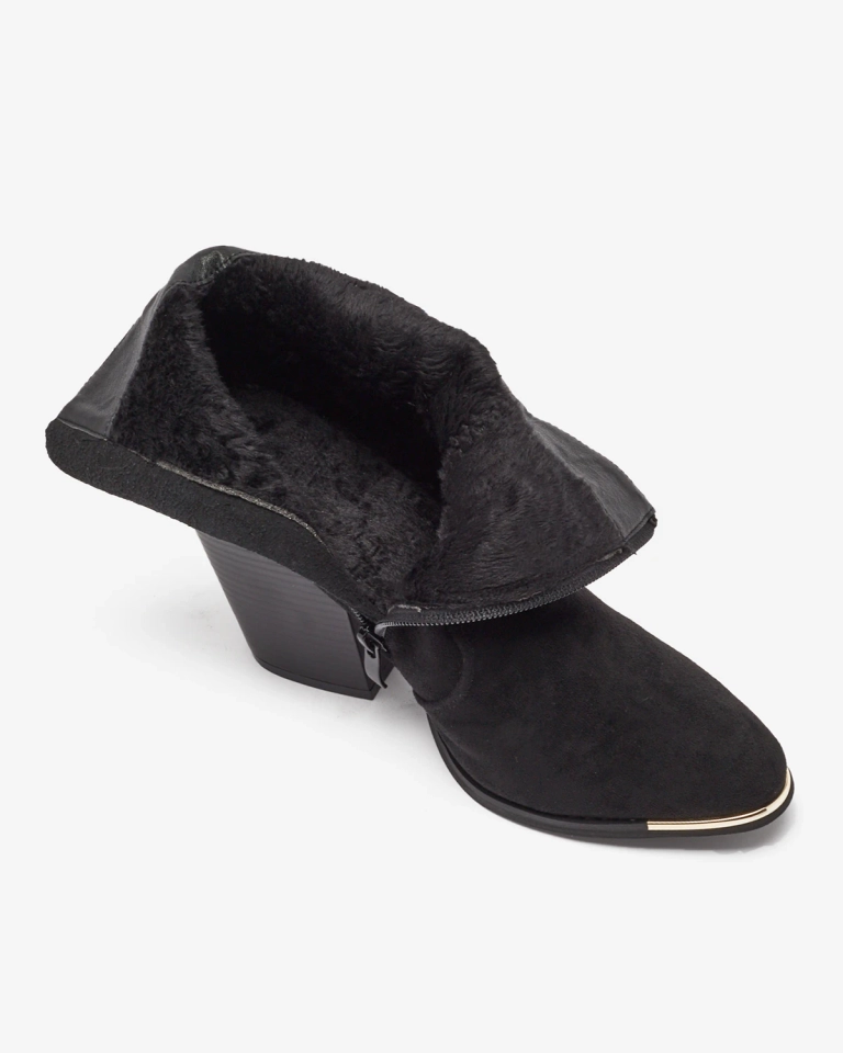 - Cizme clasice de damă pe post de cizme cu șiret stabil cu vârf migdalat. Materialul de pe partea superioară este piele eco-suede, iar mijlocul este izolat cu blană moale. O bază perfectă pentru multe look-uri de zi cu zi! Cizmulițe DIVA CHARMS pentru feme
