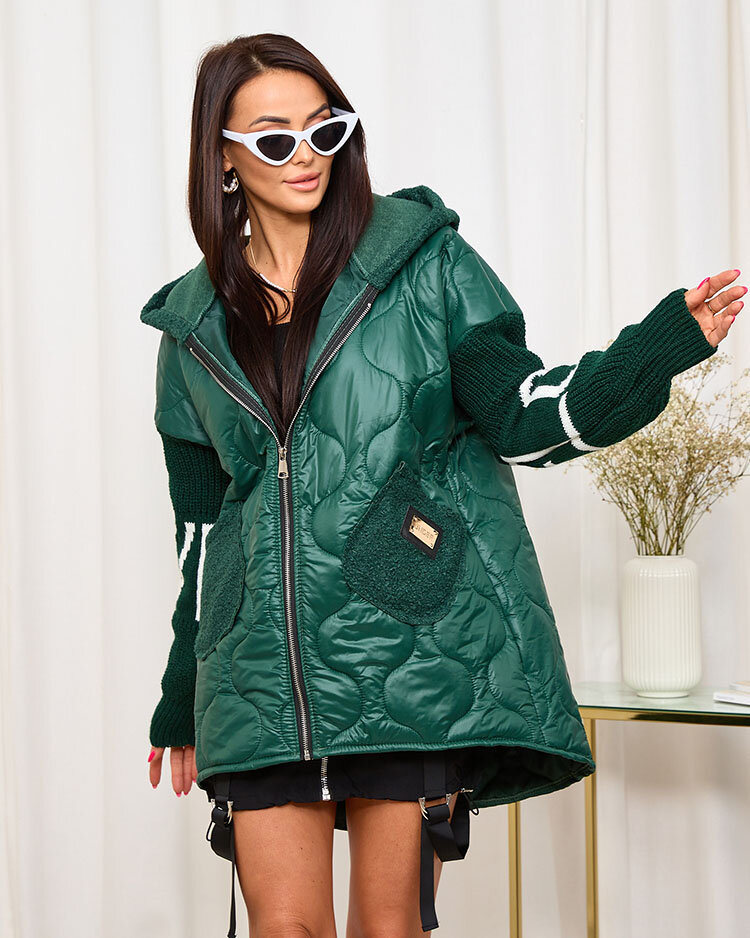 • Această jachetă matlasată pentru femei este o alegere ideală pentru zilele mai reci. Model cu glugă și două buzunare. Inserțiile cu piele de oaie îi sporesc farmecul. Mâneci tricotate finisate cu elastice pentru o mai bună potrivire și confort la purtare.