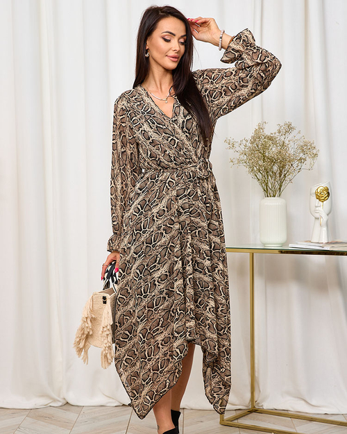 Royalfasion Rochie lungă pentru femei maro închis cu imprimeu la modă