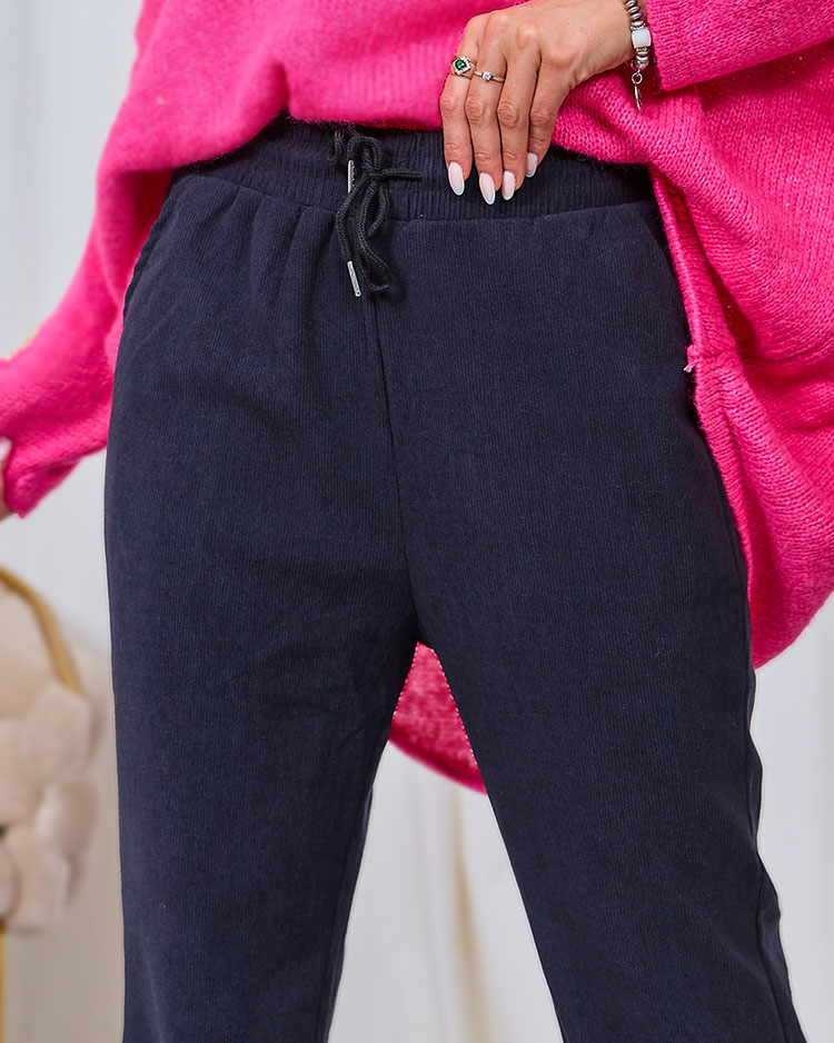 Royalfashion Pantaloni din țesătură de catifea de culoare albastru marin pentru femei