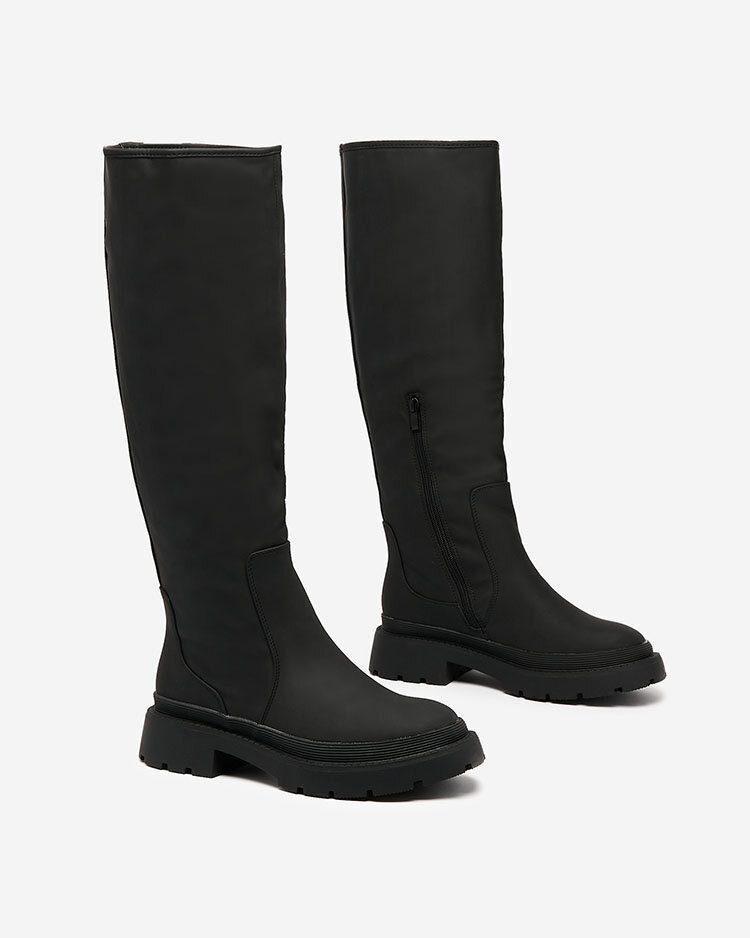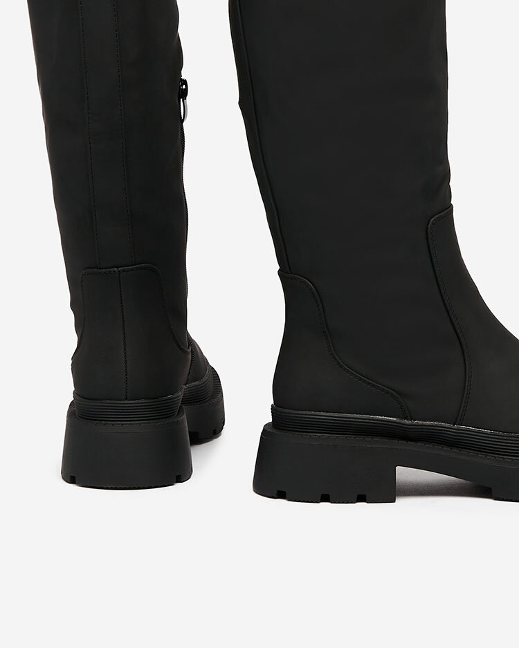 Royalfashion Negru mat cizme până la genunchi pentru femei Ikemis