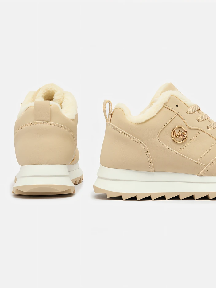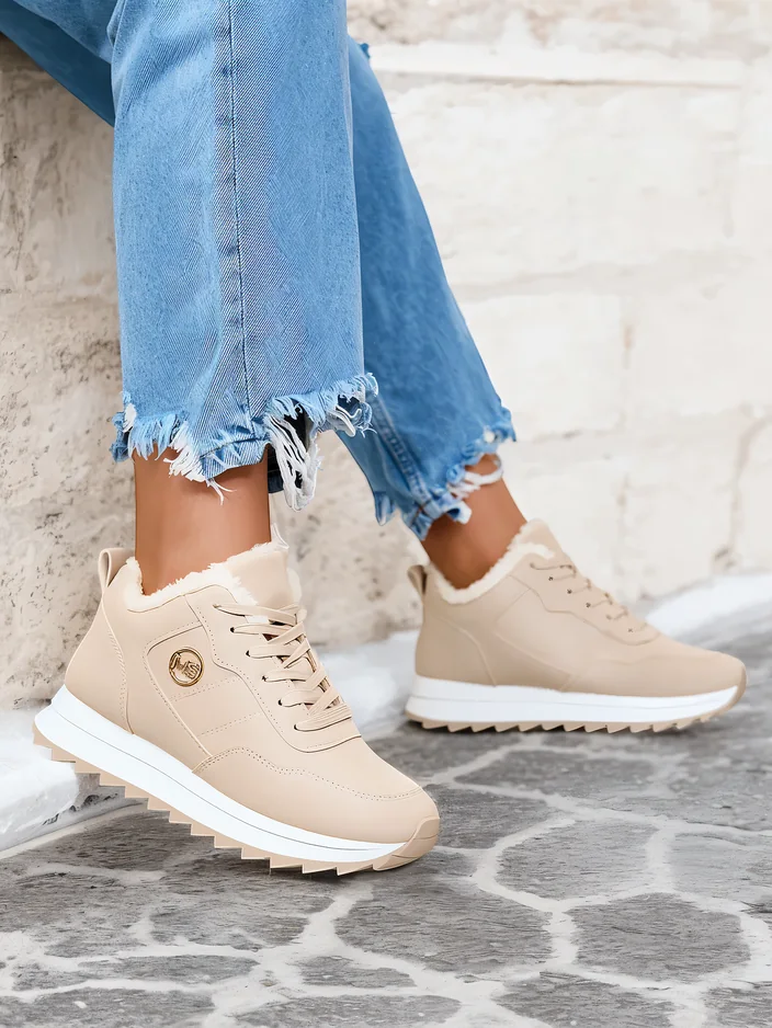 - Pantofi sport pentru femei izolate de tipul celor cu talpă mai groasă. Partea superioară cu șireturi realizată din nubuc ecologic. Blana moale în interior. Super accesoriu pentru ținutele tale casual de iarnă!
