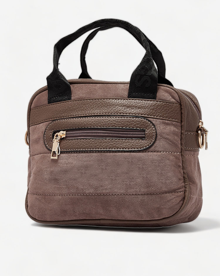 • O geantă mică unică pentru femei, realizată din piele ecologică de căprioară.Modelul are:- 1 compartiment:- 2 buzunare exterioare cu fermoar;- 2 buzunare interioare, dintre care 1 cu fermoar;- o curea detașabilă, reglabilă.