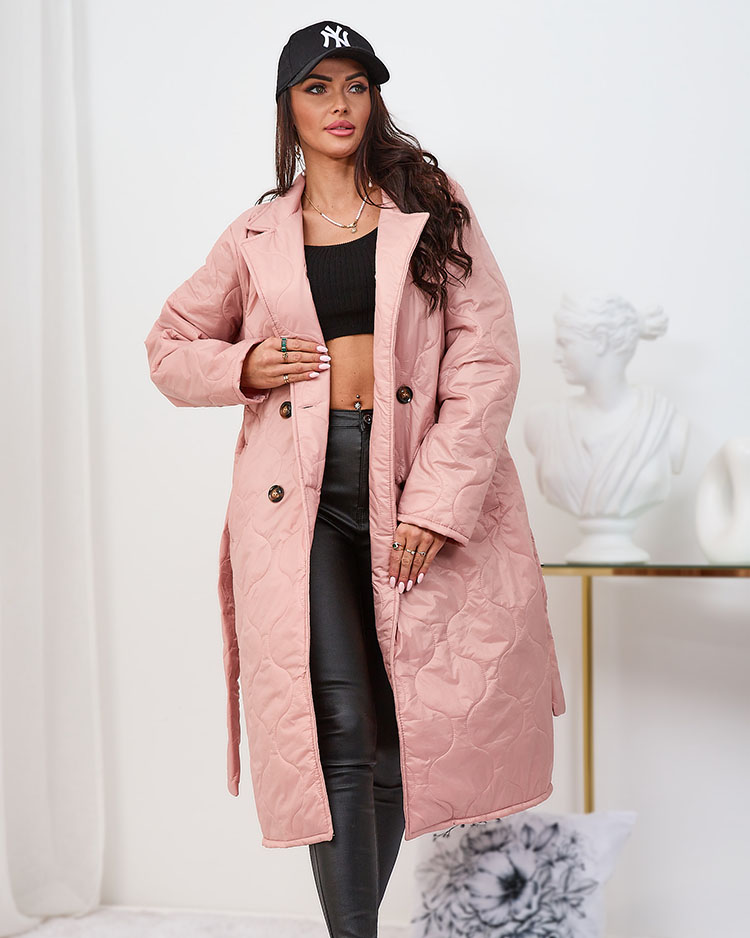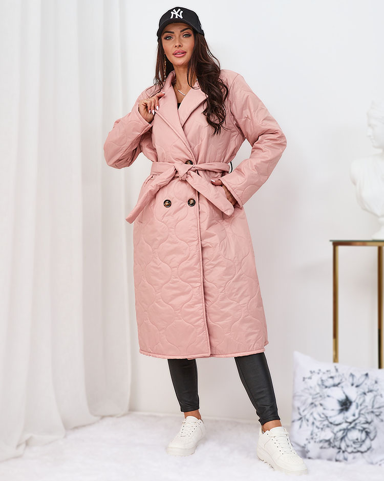 Royalfashion Palton matlasat de damă cu legătură, de culoare roz deschis