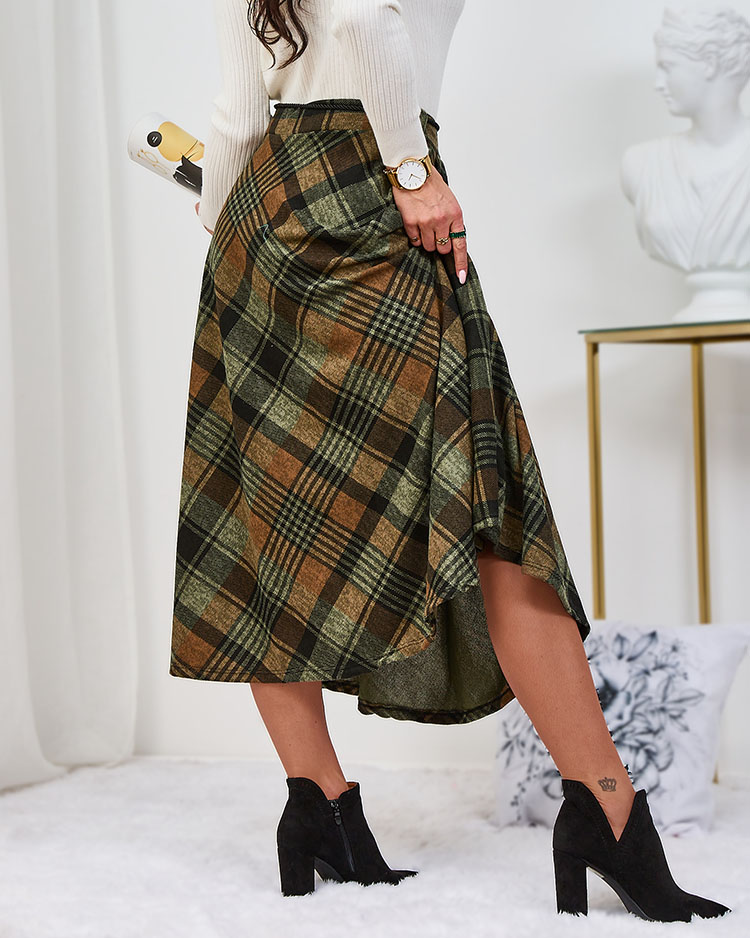 Royalfashion Fustă midi de damă în carouri maro deschis și verde