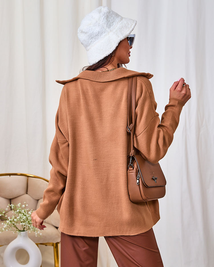 Royalfashion Pulover de damă maro închis cu guler descheiat