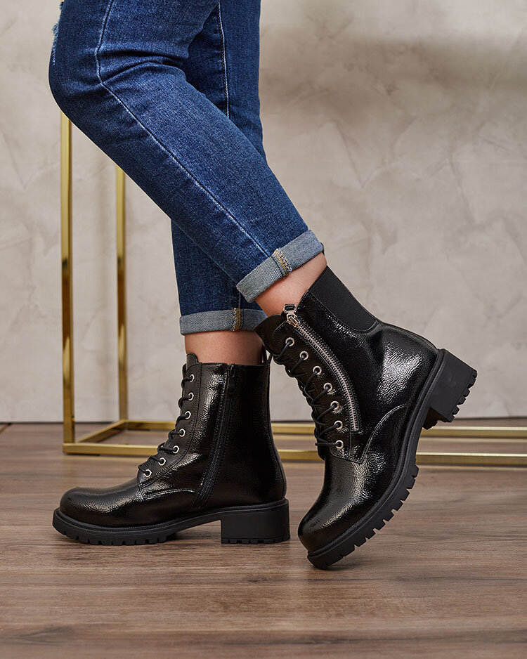 Royalfashion Cizme bagger de damă din piele ecologică neagră cu patent Gaddaxa