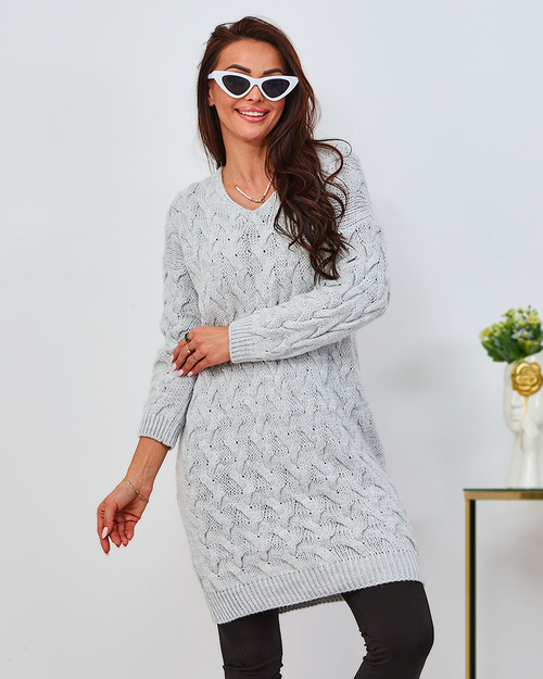 - Rochie pulover pentru femei până la genunchi, cu mâneci lungi și decolteu în formă de inimă. Confecționată din material plăcut. Decorată cu împletituri interesante pe toată lungimea. Must have al acestui sezon! NOTĂ: Precizia măsurătorilor (+/-) 1 cm. Dim