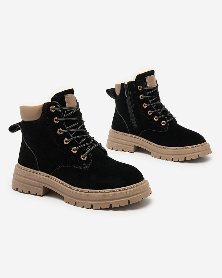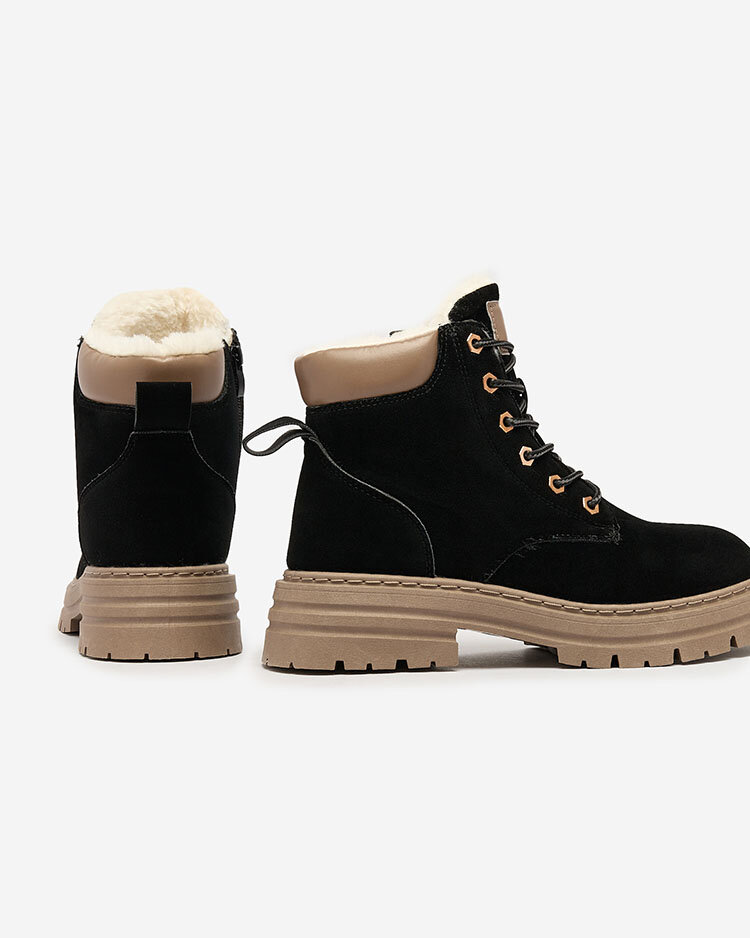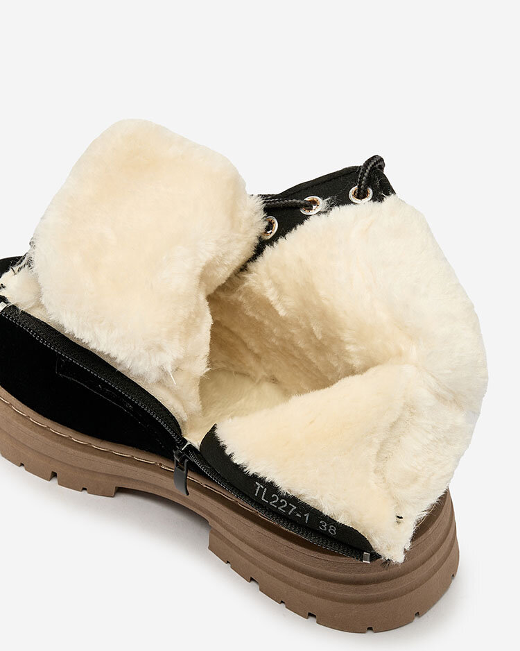 - Cizme de femeie a'la trappers atemporale. Partea superioară cu șireturi este realizată din piele ecologică mată, iar partea din mijloc este izolată cu blană moale. Super adaos la ținutele tale casual!