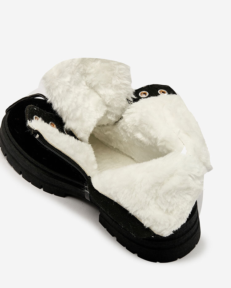- Cizme de femeie a'la trappers atemporale. Partea superioară cu șireturi este realizată din piele ecologică mată, iar partea din mijloc este izolată cu blană moale. Super adaos la ținutele tale casual!