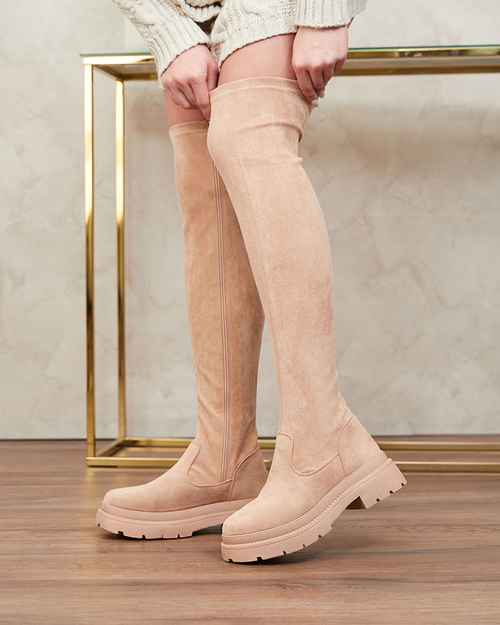 Royalfashion Cizme peste genunchi de damă bej Ridesa