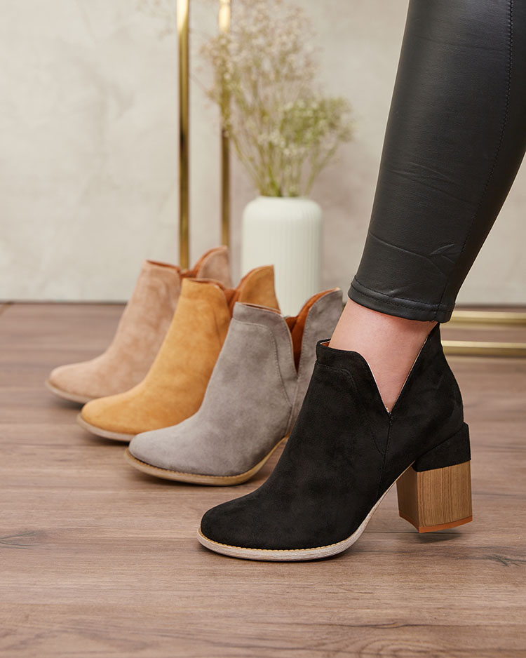 - Cizmele elegante din piele ecologică pentru femei sunt perfecte pentru zilele mai reci. Partea superioară este prevăzută cu fermoar, cu blană în interior. Modelul pe un post mai înalt și cu botul rotund. Super adaos la ținutele tale casual!