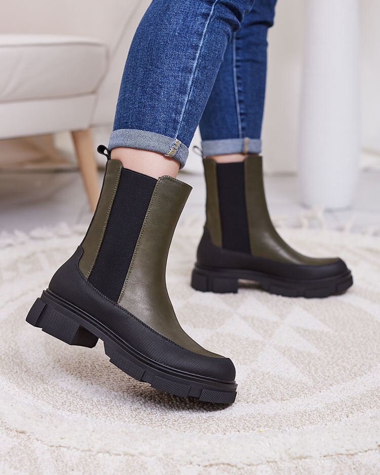 - Cizme de damă mega elegante cu fermoar în mijloc. Partea superioară este realizată dintr-o combinație de piele ecologică și mată. În interior există o talpă din țesătură. Talpa mai groasă vă face să vă simțiți confortabil la fiecare pas. O alegere excelen