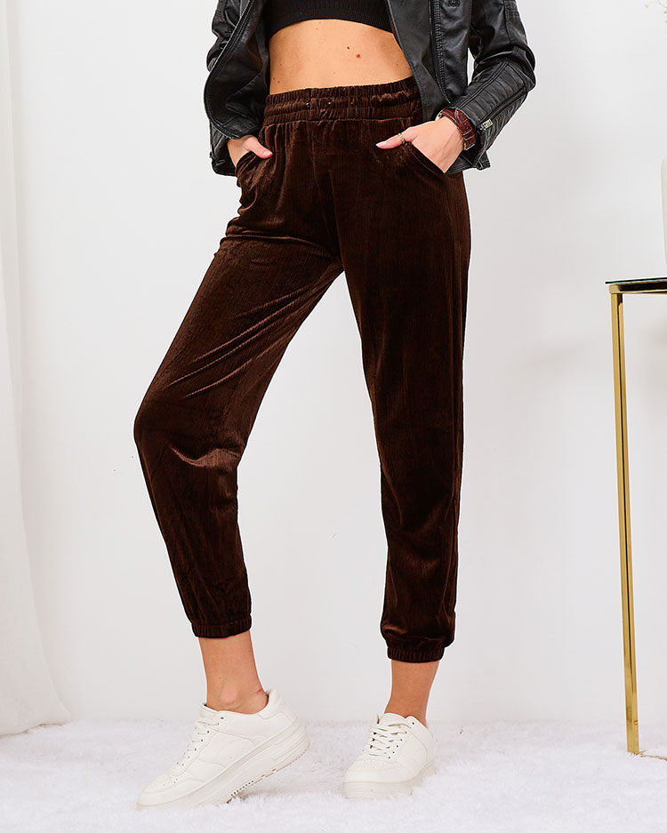 Royalfashion Pantaloni de trening din catifea gri pentru femei