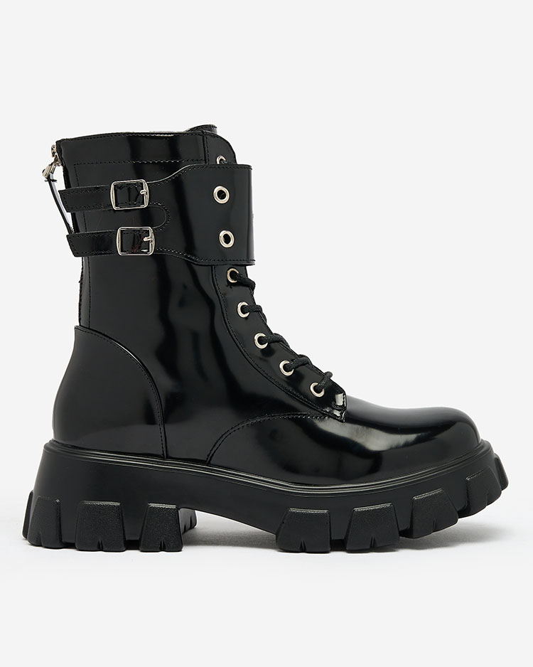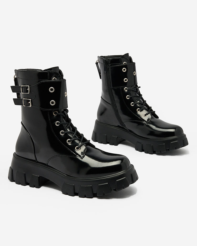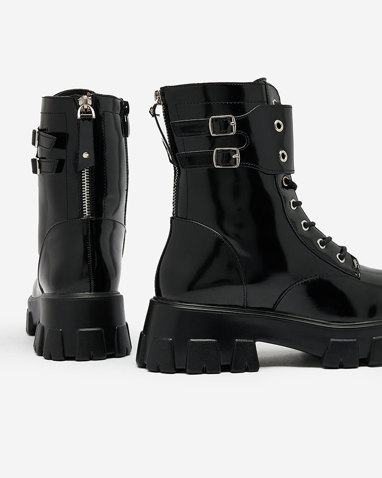 Royalfashion Cizme bagger de damă lăcuite negru Xagaga