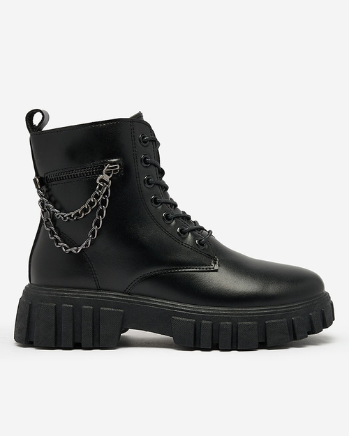 Royalfashion Cizme bagger de damă din piele ecologică de culoare neagră Stiifer